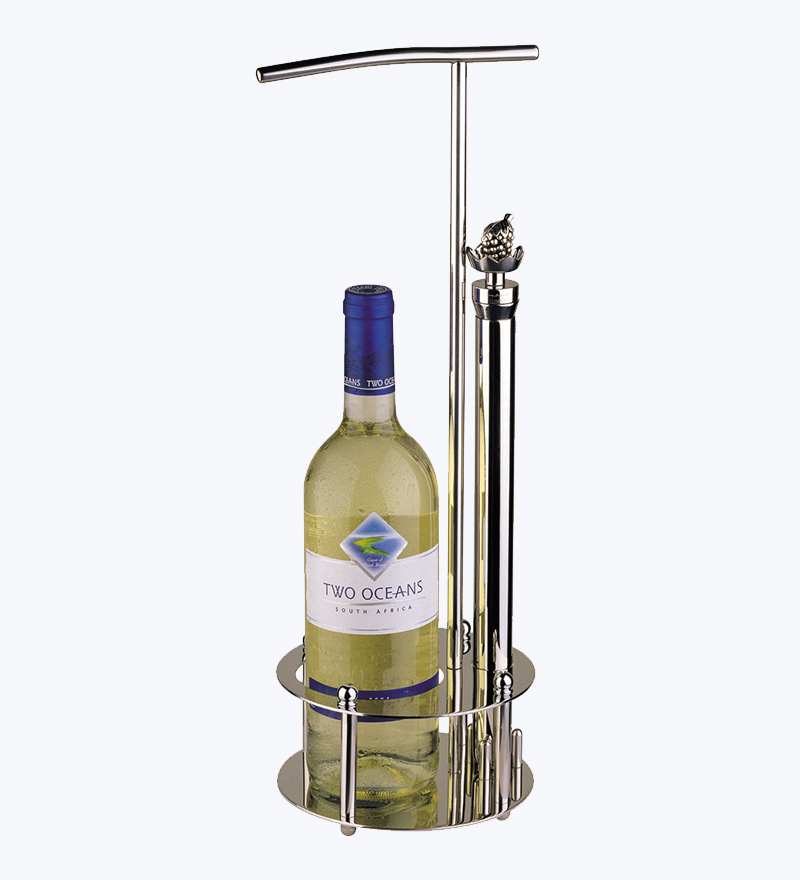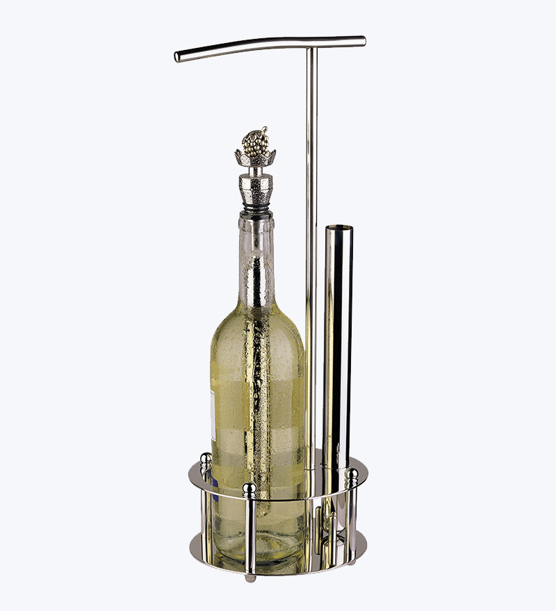 So können Sie edlen Wein stilvoll am Tisch servieren. Der schöne und praktische Servierhalter fasst genau eine Flasche und das Weinzepter. So hat das Weinzepter seinen Platz, während dioe Flasche am Tisch geöffnet und der erste Schluck verkostet wird. Der Servierhalter ist ideal für Zu Hause und für Restaurants geeignet – überall, wo stilvoll perfekt gekühlter Wein genossen wird.